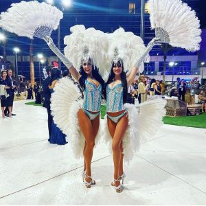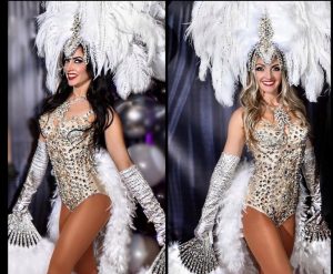 Nothing beats having Las Vegas show girls for your event. Everybody loves getting their photos with them. Our Las Vegas show girl costumes comes in all colors and styles including custom made costumes. Have your show girl costume colors to match your company branding.Our show girls are available for both public and private events. Contact us for booking inquiry and show girl options. You can click on to enlargeĀ